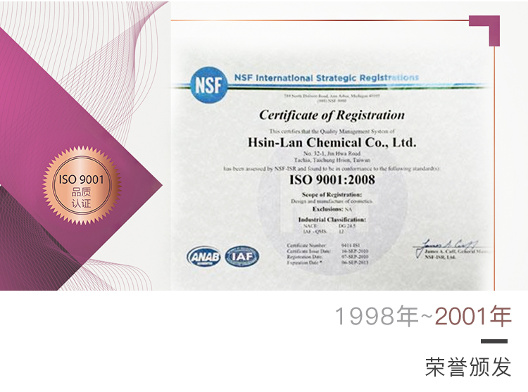 通過美國NSF ISO 9001:2008品質(zhì)認證。